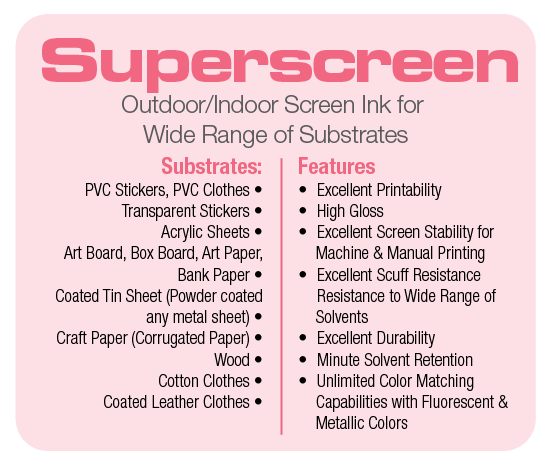 Outdoor/Indoor Screen ink for Wide Range of Substrates.