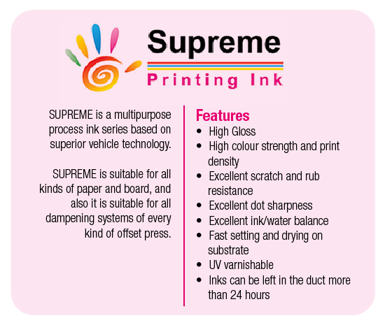 Supreme is a multipurpose process ink series based on superior vehicle technology.